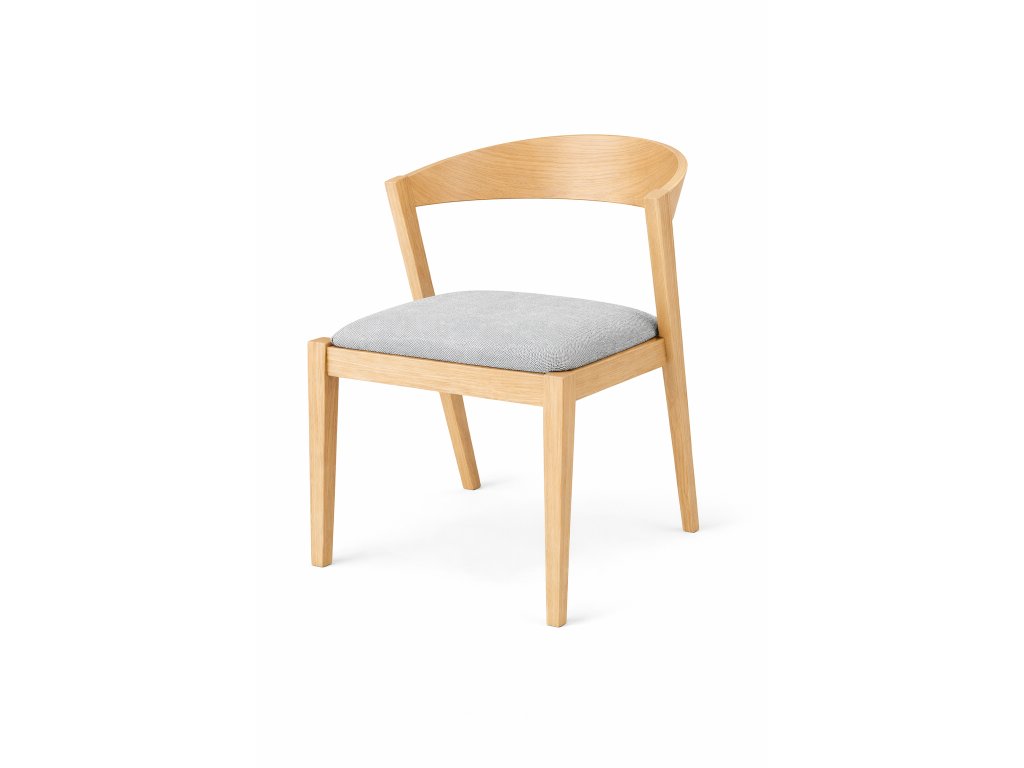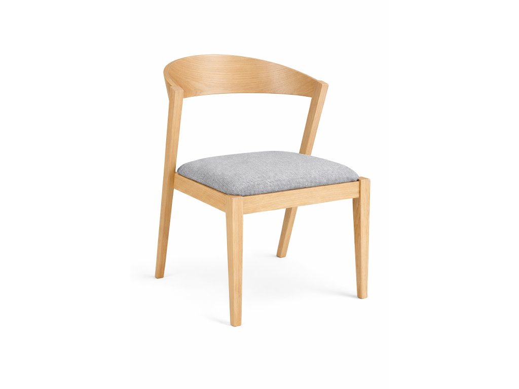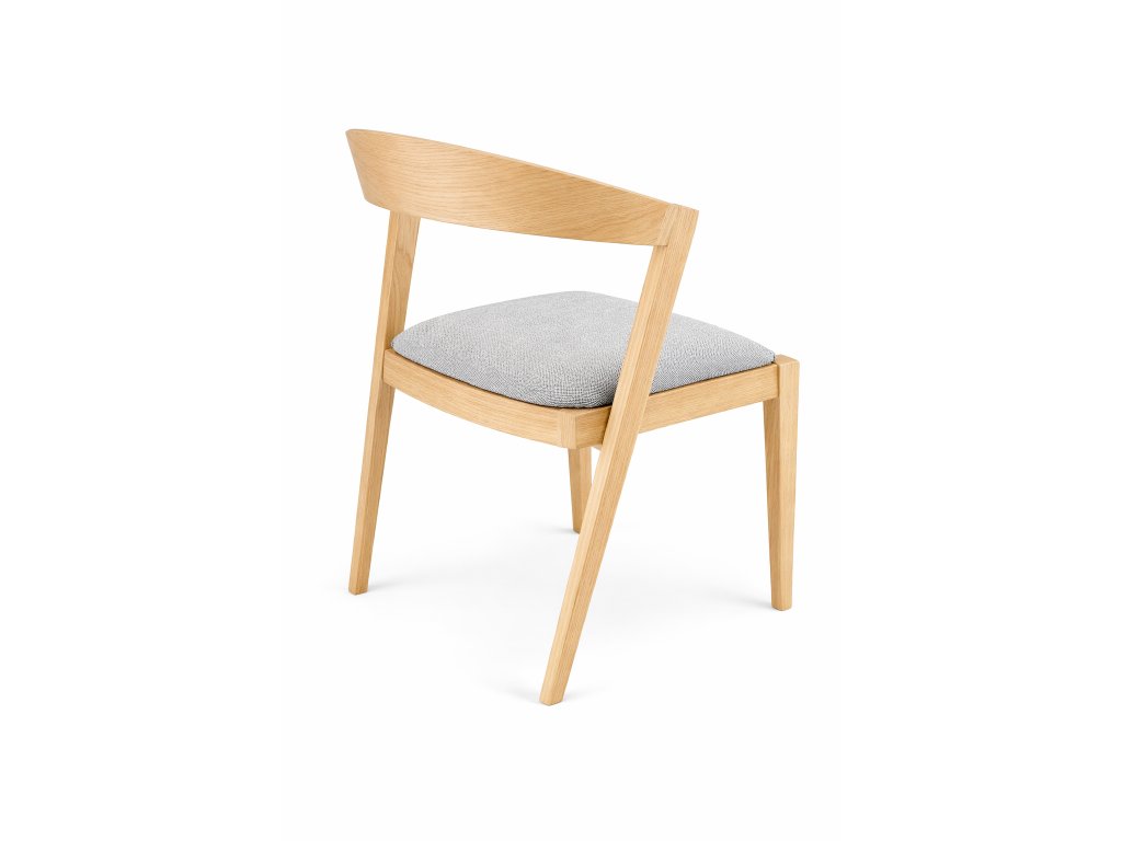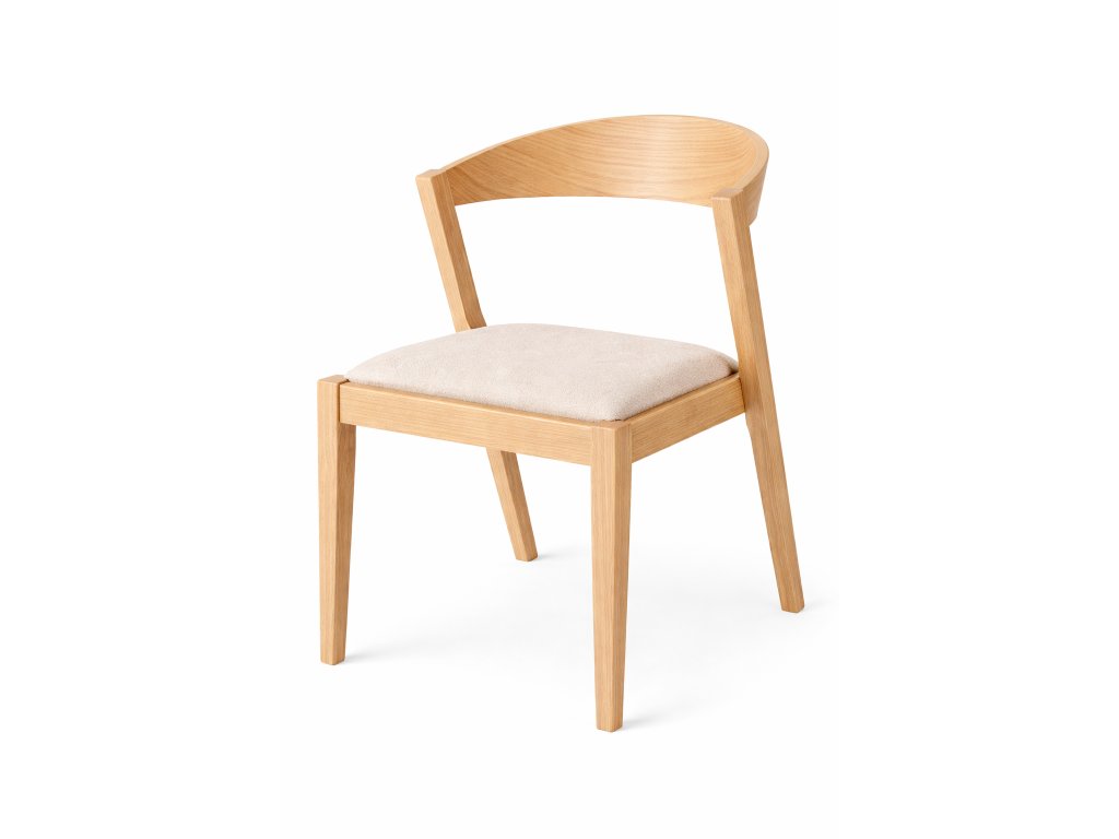 Moderná jedálenská stolička vyrobená z kvalitného masívneho dubu v prirodzenom svetlom odtieni. Elegantne tvarovaná ohýbaná opierka poskytuje pohodlnú oporu chrbta a zvýrazňuje čistý, nadčasový dizajn. Sedák je čalúnený béžovou látkou príjemnou na dotyk, ktorá dodáva stoličke jemnosť a vizuálnu ľahkosť.
