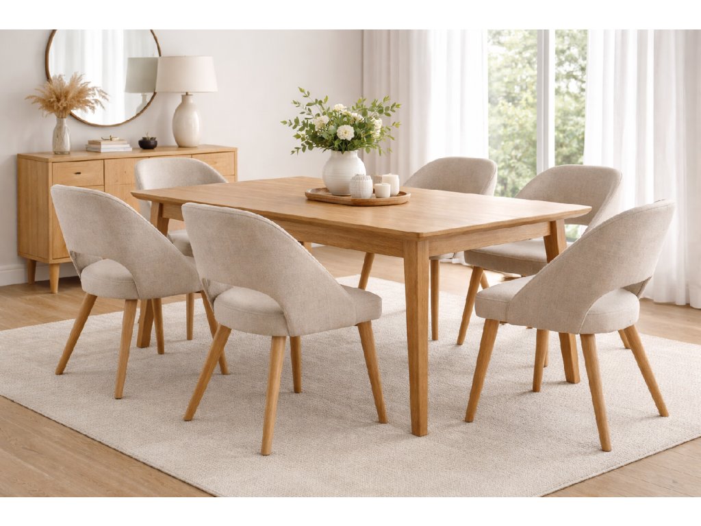 Dolbias Slim sa skvele hodí do moderných, škandinávskych aj nadčasových interiérov. Kombinácia dubového dreva a kvalitného čalúnenia vytvára harmonický dizajn, ktorý doplní každý jedálenský stôl z masívu.