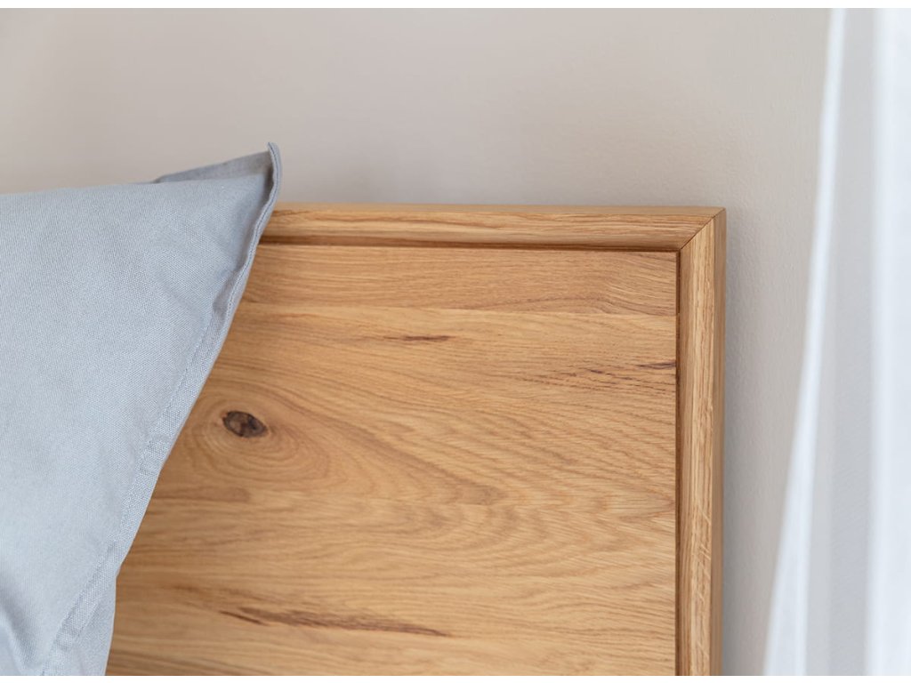 Masívna dubová posteľ Ria je vyrobená výlučne z prírodného dubového dreva, ktoré bolo ošetrené kvalitným olejom. Dub je známy svojou hustotou a pevnosťou – odoláva každodennému používaniu a nestráca svoj tvar ani stabilitu. Vďaka tomu je táto posteľ z masívu investíciou na dlhé roky.