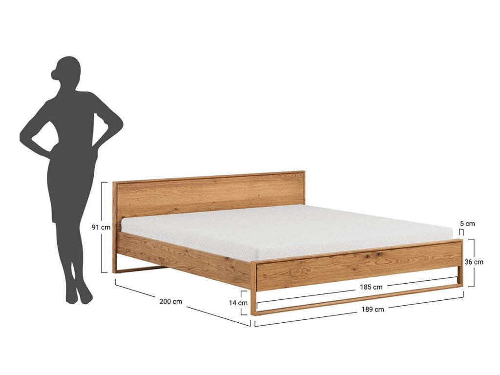 Ak hľadáte kvalitný spánok, odolnosť a jedinečný dizajn, dubová posteľ z masívu Ria v rozmere 180 × 200 cm je tou správnou voľbou. Ide o veľkú a pohodlnú posteľ, ktorá poskytuje dostatok priestoru pre dvoch a zároveň sa stane dominantou každej spálne. Vyniká nadčasovým vzhľadom a krásne zapadne do interiérov v loftovom, modernom či minimalistickom štýle.
