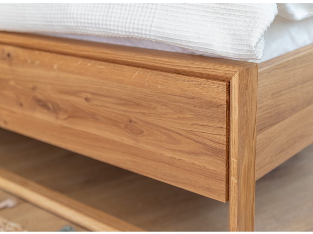 Teplý odtieň dubového dreva vytvára príjemnú atmosféru a dodáva interiéru útulnosť. Každá dubová posteľ je jedinečná – vďaka prirodzenej štruktúre a kresbe dreva budete mať doma originál, ktorý nikto iný nevlastní.