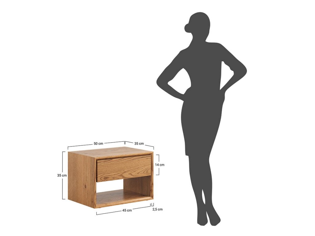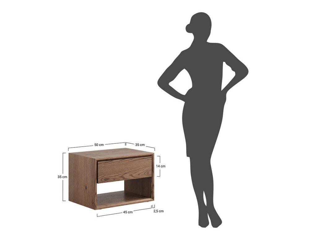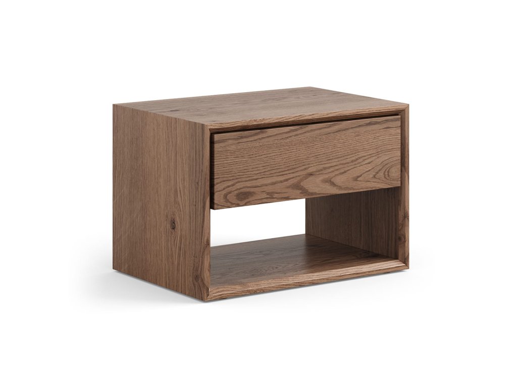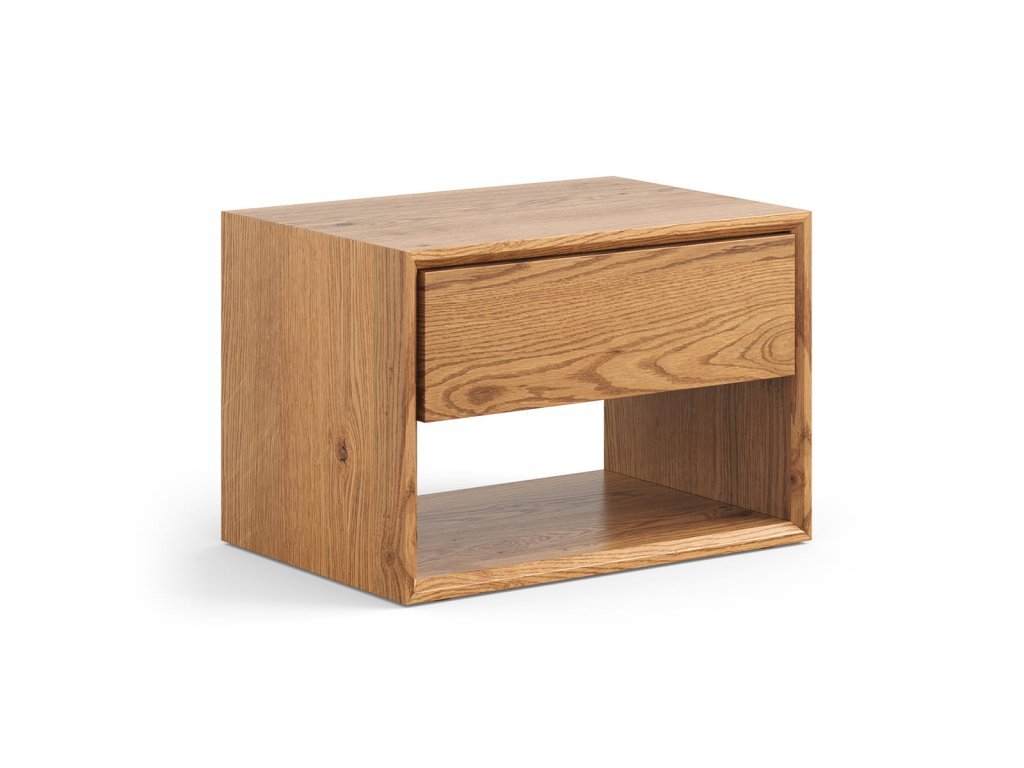 Aj pri kompaktných rozmeroch ponúka nočný stolík RIA 2 veľa úložného priestoru. Disponuje priestrannou zásuvkou na knihy, okuliare či nabíjačku a otvorenou policou na časopisy alebo dekorácie. Využijete ho nielen v spálni, ale aj v obývačke či predsieni ako praktický odkladací stolík.