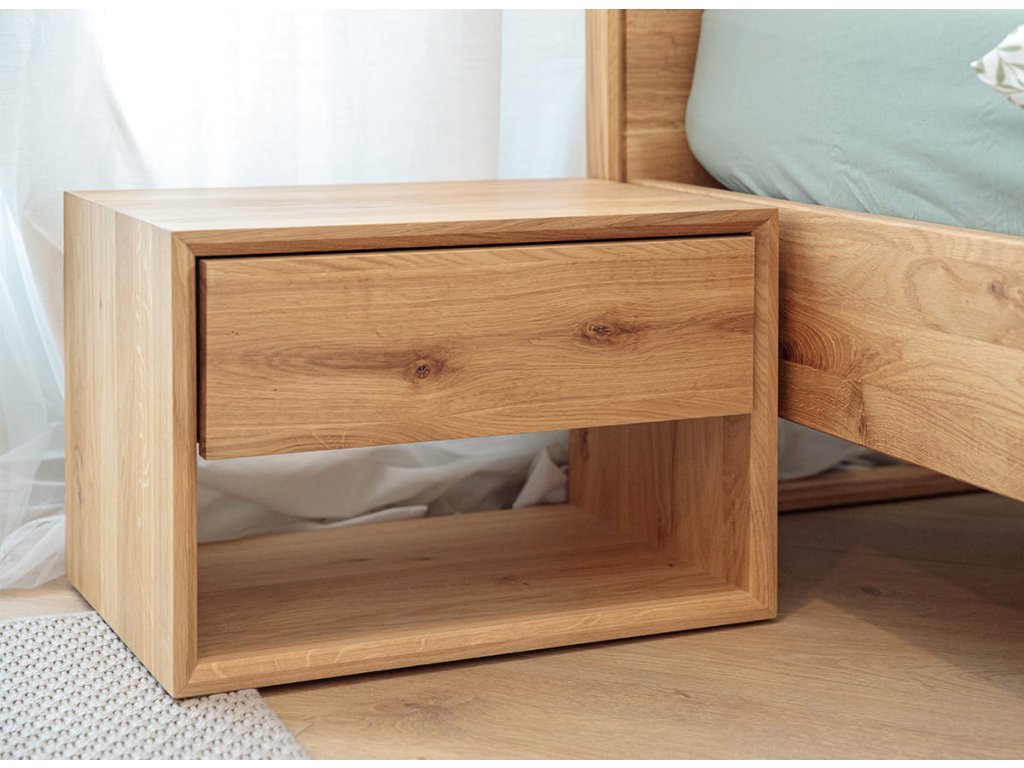Nočný stolík z dubového dreva v odtieni tabaku z kolekcie RIA 2 predstavuje nadčasový, elegantný a praktický kúsok nábytku. Jeho tmavé tóny pripomínajú vôňu rannej kávy a olejovaná povrchová úprava zvýrazňuje prirodzenú kresbu dubového masívu. Minimalistický dizajn sa hodí do moderných, škandinávskych aj klasických interiérov.
